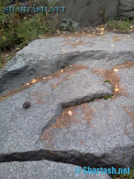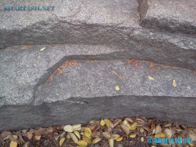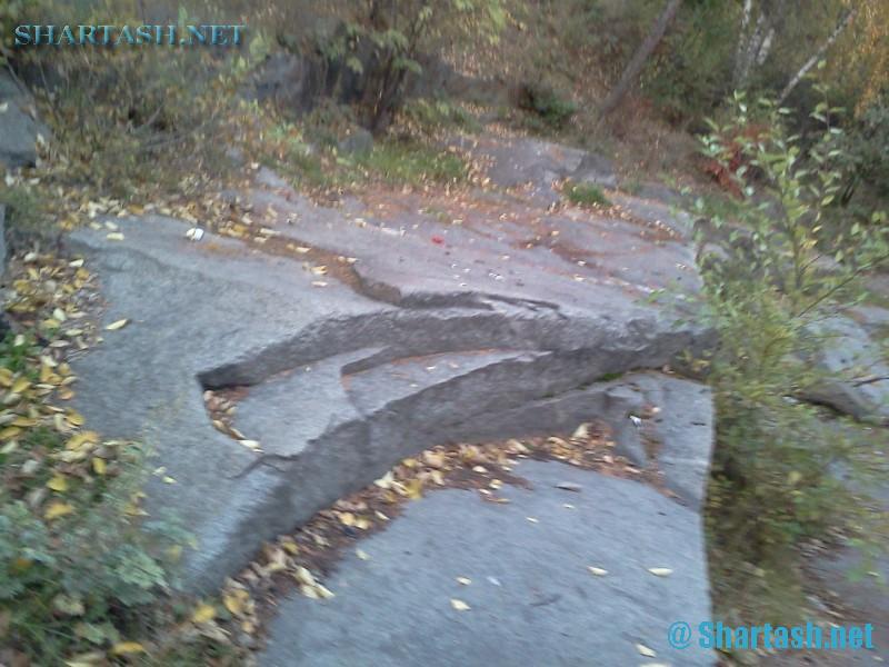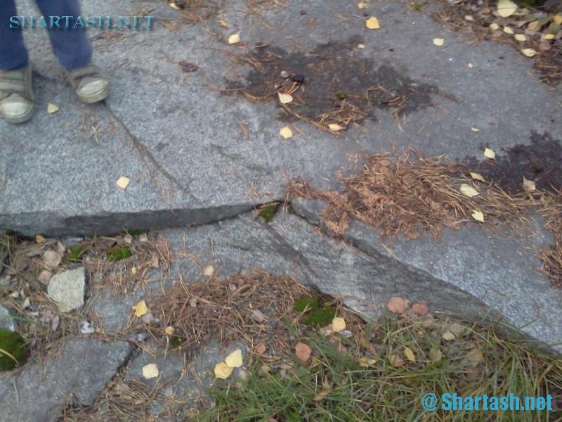 И еще набор фото еще одного места на Шарташе. Оно также как и в других публикациях нашего блога, а именно - dged9.livejournal.com/1509.html состоит из плиты внизу со швами и вырезами и стенок под слоем почвы. Смотрим фото: