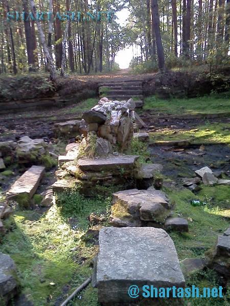 Легенда, не более того. Но - каменная гряда (вернее ее остатки) есть и сейчас. Правда старые камни покрыты более новыми плитами, и каменная гряда скрывается под водой, выступая лишь на небольшую длинну. Это излюбленное место рыбаков, которые просиживают там и зимой и летом. И эта каменная гряда совсем недалеко от наших плит и холма "Красная горка"...Но если это именно та гряда -которая рядом с местом, где лежат плиты у берега. С другой стороны довольно далеко от этого места есть тоже дорога, лежащая по дну озера. Но проходит ли она в центр его или нет - пока непонятно. В нескольких местах, можно, удалившись довольно далеко от берега - встать на песчаную отмель и пойти по ней. Найти этот остров под водой наверное можно - но достаточно трудно, т.к все покрыто толстым слоем ила. Каменная гряда тянется с восточного побережья. А если прочитать статью о каменном цветке - КАМЕННЫЙ ЦВЕТОК ХОЗЯЙКИ МЕДНОЙ ГОРЫ ИЛИ ДРЕВНЕЙШИЙ ХРАМ? то мы видим что эта конструкция как бы повторяет модель - "озеро - остров в центре - каменная тропа"