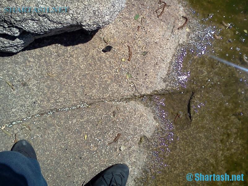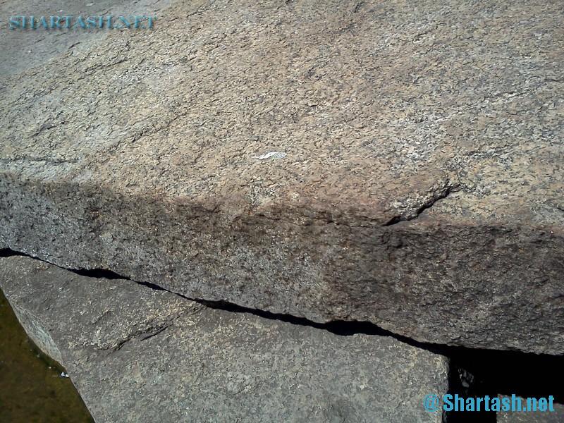Швы на плитах, как мы видим - тонкие как волос, и углы, заметим - похожи на углы в плитах во всех наших статьях, посвященных этой теме - оз. Шарташ
