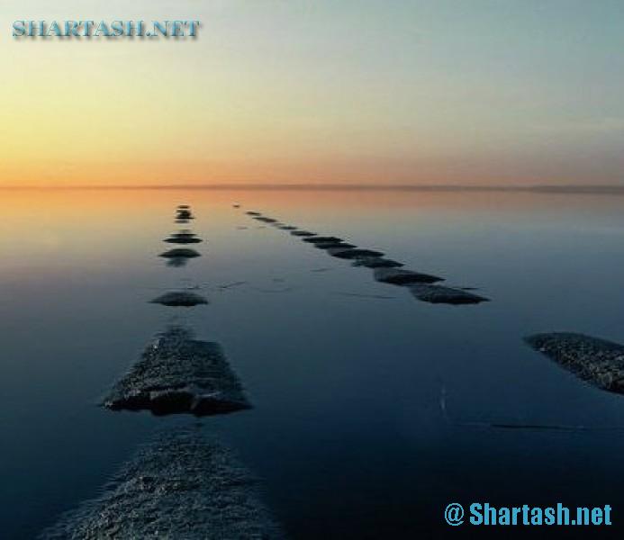 И древние шаманы, каким-то образом c помощью ритуалов поднимали остров со дна озера, потом шли по этой каменной тропе и всходили на остров в центре озера, где совершали обряды и ритуалы.