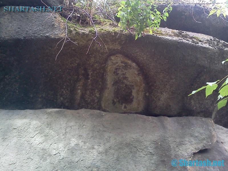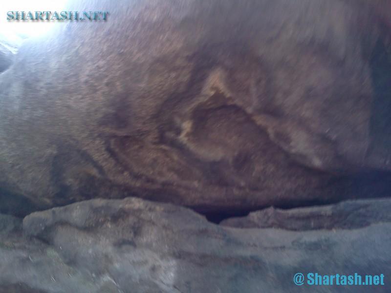 - видны вмятины на камне огромных пальцев как-будто. Хотя что это на самом деле-сказать трудно.... А Вы как думаете?